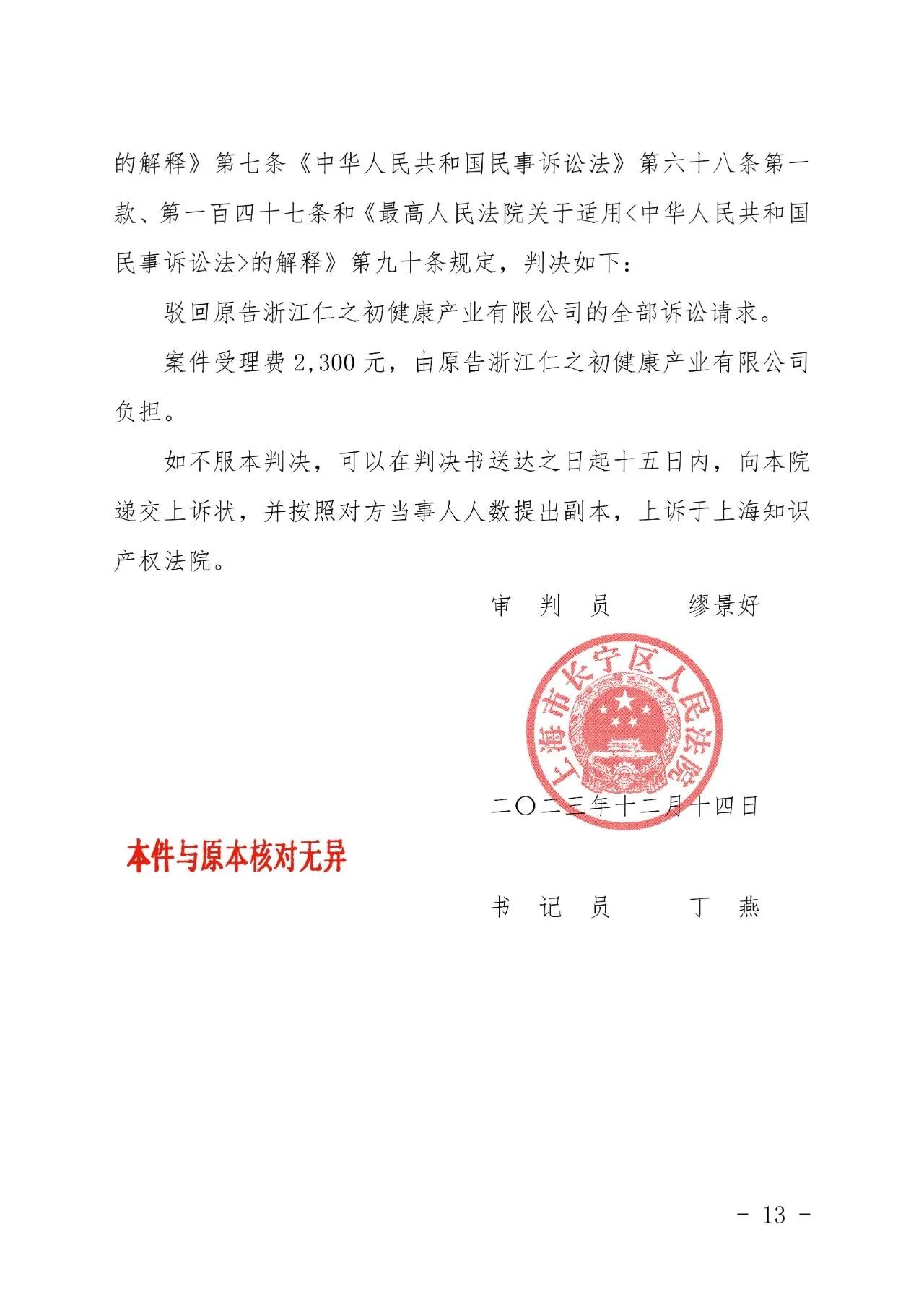 盘锦辉知胜诉佳讯 | “仁之初健康”著作权及不正当竞争纠纷案,法院:驳回全部诉讼请求!